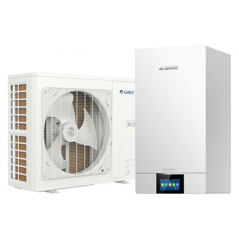 Тепловые насосы Gree GRS-CQ12PdG/NhH2-M серии Versati III (сплит-системы с водяным баком) «воздух-вода» с инверторными компрессорами с впрыском пара предназначены для нагрева воды для горячего водоснабжения или напольного отопления, а также для отопления или охлаждения воздуха в помещении до 120 м²Особенности и функции Gree GRS-CQ12PdG/NhH2-M